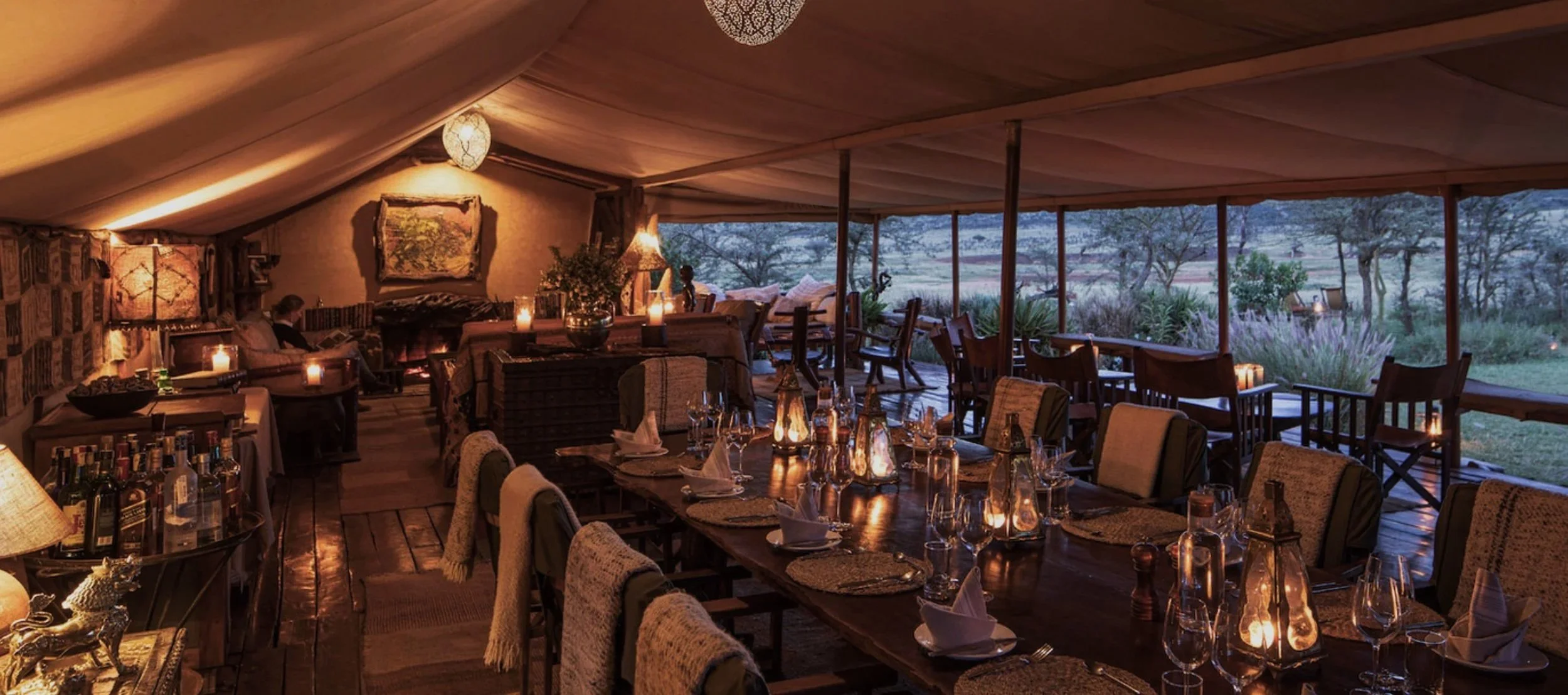 5-nights at Enasoit - A private family owned wildlife reserve and luxury tented camp on the foothills of Mount Kenya. Enasoit carries a quiet, old-world sensibility — mornings beneath canvas as birdsong carries through cool air and coffee steams in your hands; lanterns flickering after dusk; the quiet presence of wildlife just beyond the glow of the fire. Evenings unfold in worn chairs and unhurried conversation beneath a sky dense with stars.